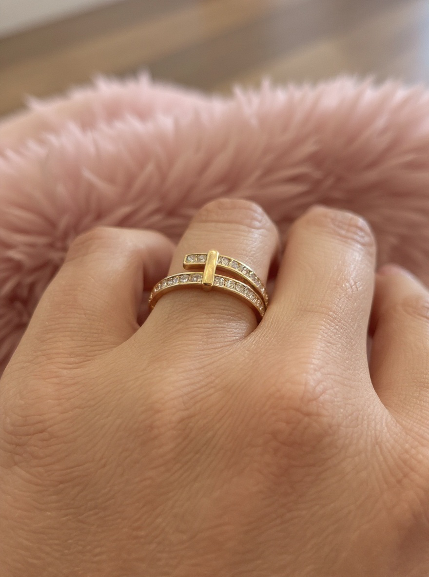 Dayanıklı çelikten üretilmiş, gold renk kaplamasıyla şıklık sunan Ayarlanabilir Twin Bar Yüzük, Urban Chic Collection'ın modern tasarımını yansıtıyor. Minimalist çizgiler ve ayarlanabilir yapısıyla her parmağa uyum sağlayan bu aksesuar, günlük ve özel anlarda tarzınızı tamamlar.