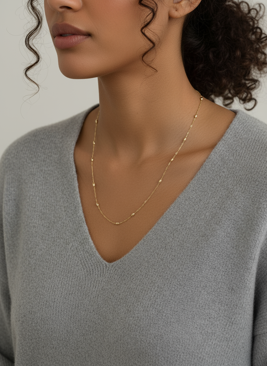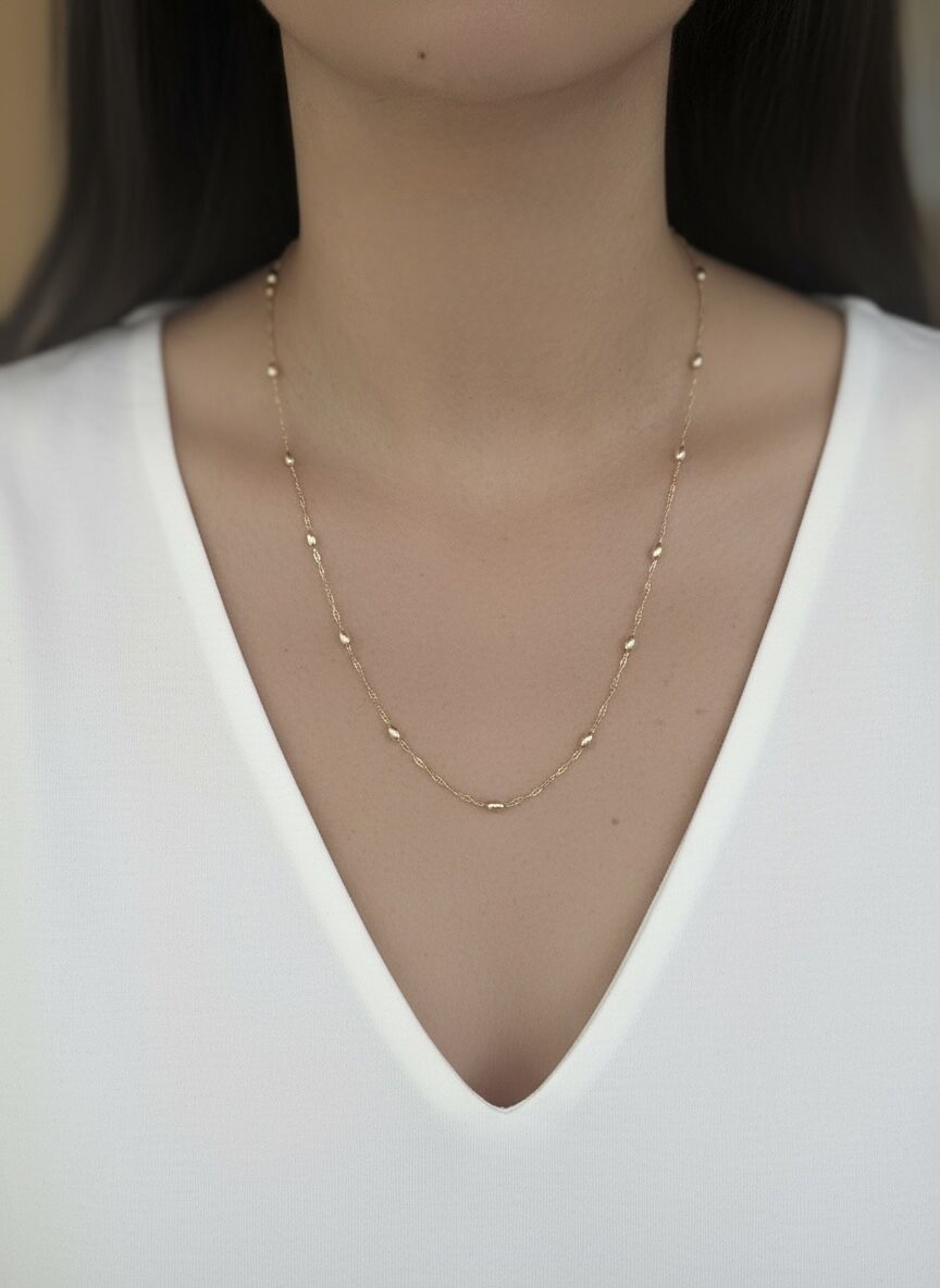Çelik 14-K kaplama boncuk model zincir, zarif ve dayanıklı tasarımıyla her stile uyum sağlar. Gold renk kolye, Luna Collection’ın şıklığını yansıtarak günlük kullanımda ve özel anlarda dikkat çekmenizi sağlar. Hafif yapısı ile konfor sunar, her kıyafetle mükemmel uyum sağlar.