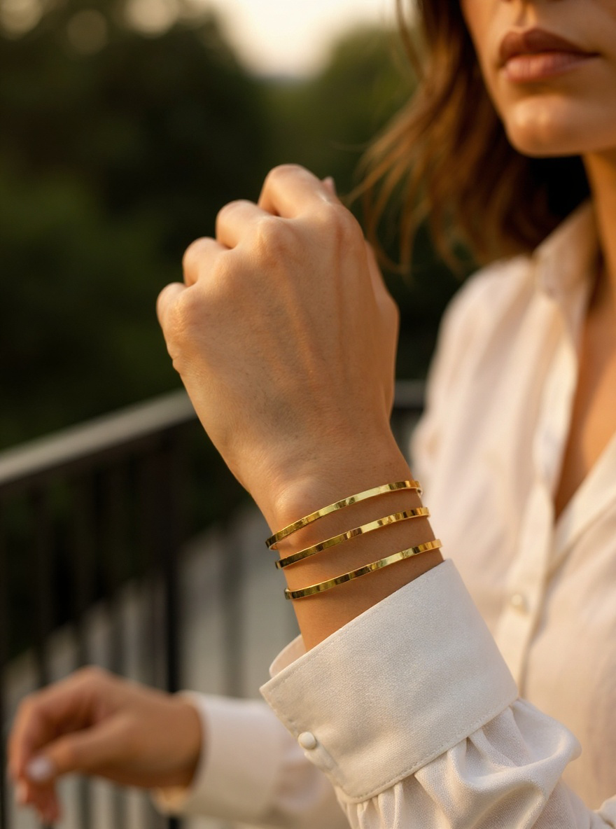 3'lü Çelik Ajda Bilezik Seti, şık ve dayanıklı tasarımıyla tarzınıza zarafet katıyor. Gold rengi, her kombinle kolayca uyum sağlar. Hafif yapısı sayesinde günlük kullanım için idealdir. Hem özel günlerde hem de gündelik hayatta göz alıcı bir aksesuar arıyorsanız, bu set tam size göre.
