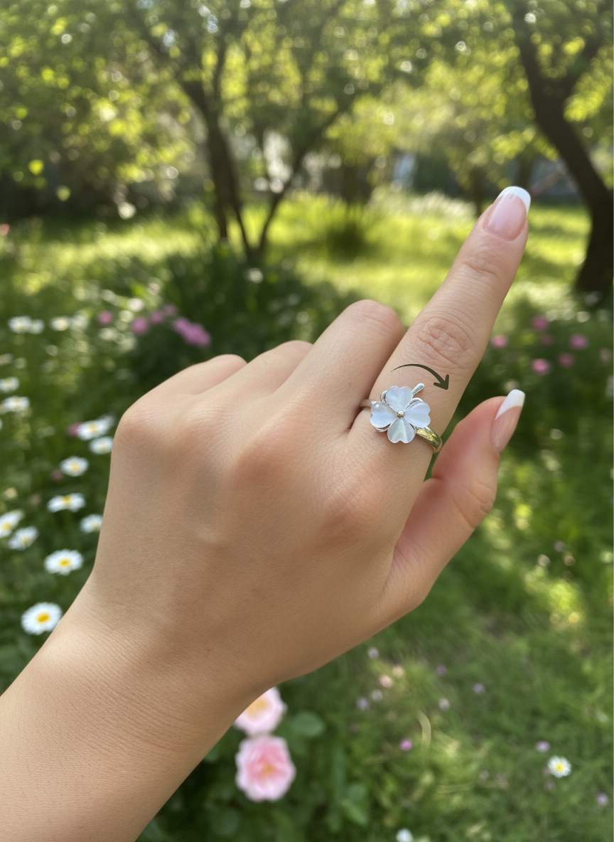 Zarif çiçek figürüyle tasarlanmış dönen stres yüzüğü, gümüş rengiyle şıklığı bir araya getirir. Stres anlarında rahatlama sağlayan bu yüzük, günlük kullanım için idealdir. Hem estetik hem fonksiyonel olan bu aksesuar, stilinize zarif bir dokunuş katacak.